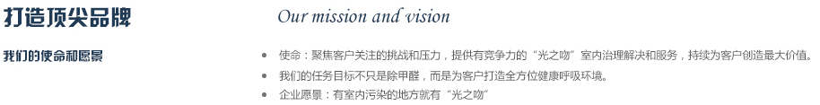 2012年公司斥巨資從德國專業(yè)空氣研發(fā)實驗室引進銳鈦型納米二氧化鈦研發(fā)成果,同時與國內知名高校進行合作,成立光之吻”品牌,致力于為人類創(chuàng)作純凈,健康的呼吸環(huán)境,成為你身邊的健康衛(wèi)士,實現(xiàn)365天健康呼吸的夢想,目前是同類產(chǎn)品中最有競爭力的品牌之一。